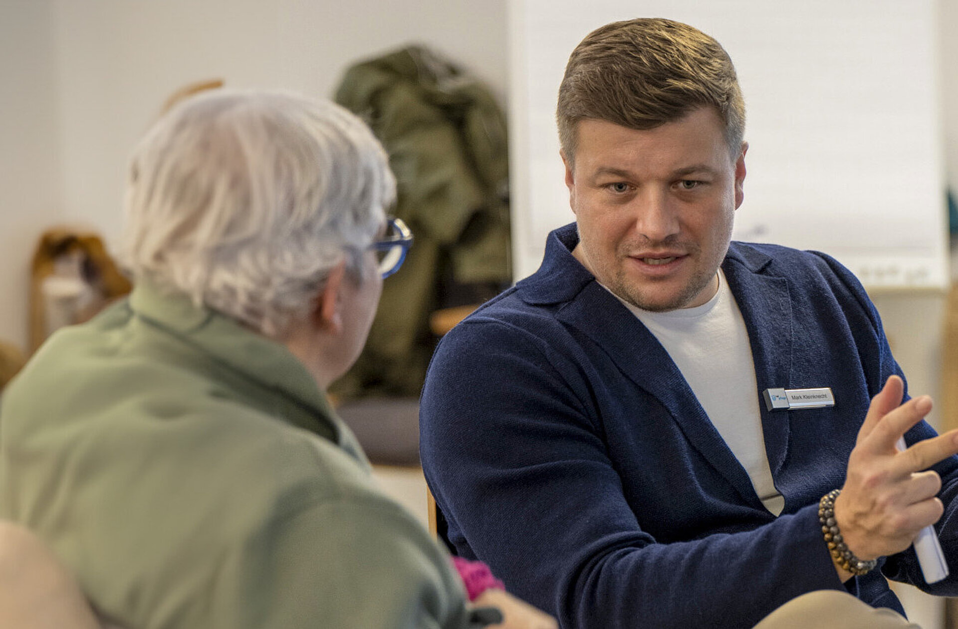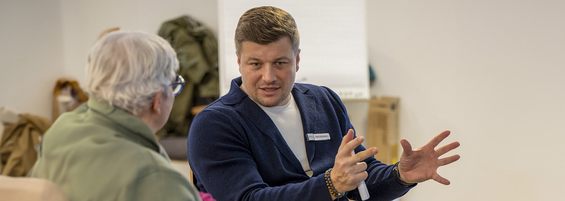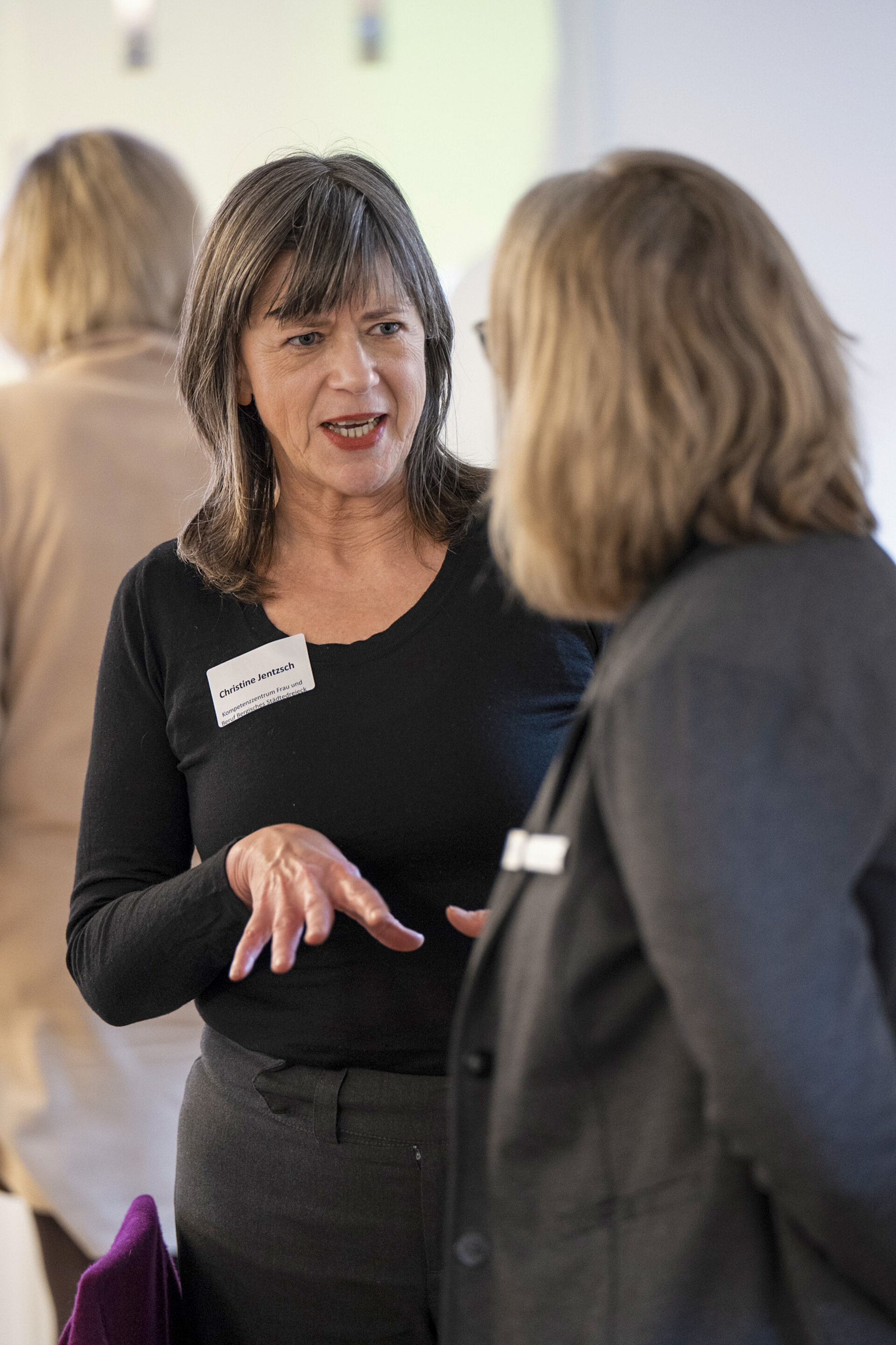 Am 9. Februar war es dann soweit und wir durften die Teilnehmerinnen zum Thema „Vereinbarkeit Pflege und Beruf“ bei uns am Hofkamp begrüßen. Christine Jentzsch vom Kompetenzzentrum Frau und Beruf Bergisches Städtedreieck, Bergisch Competentia, führte durch den Nachmittag und stellte mit einem kleinen Interview mit Talpflege-Geschäftsführer Mark Kleinknecht das Unternehmen vor. Dabei ging es auch um die aktuellen Lösungen und die Unterstützung der Vergangenheit für Talpflege-Mitarbeitende, die sich in einer Doppelrolle Beruf und Pflege bewegen.