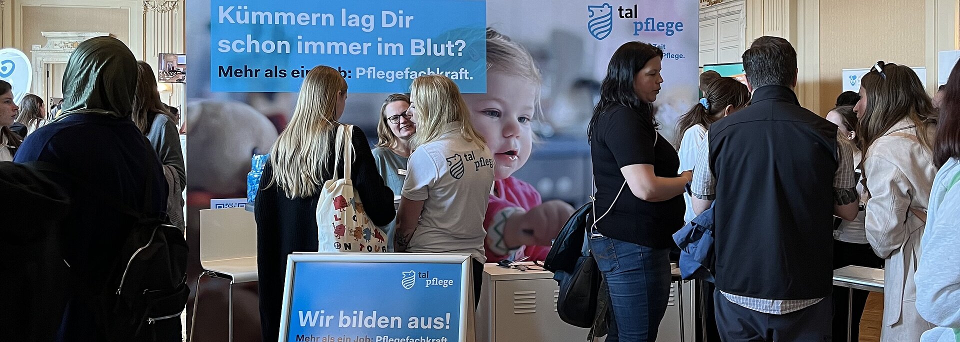 In der Stadthalle bekommst du die Gelegenheit, mit unseren Praxisanleiterinnen und Auszubildenden ins Gespräch zu kommen. Unser Talpflege-Team informiert dich gern über die verschiedenen Berufsbilder in der Pflegebranche wie Betreuungsassistenz oder Pflegehilfskraft. Besuche uns im Mendelsohn-Saal auf der 1. Etage – wir freuen uns darauf, dir unseren wertvollen Beruf näherzubringen!